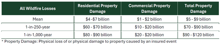 Figure 1: Estimate of damages to property under different levels of wildfire severity. Source: SB 254 Report
